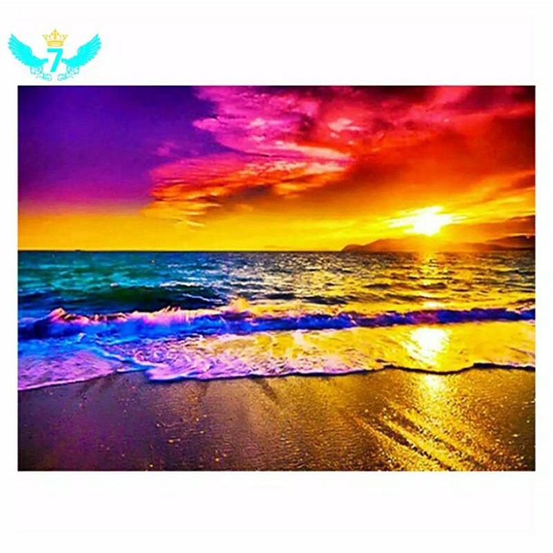 5d diy diamond painting lukisan berlian pemandangan pantai senja sore.